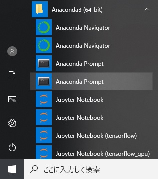 7.[Anaconda Prompt]を開きます。