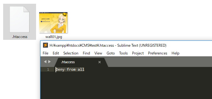 そのため、以下の文を書き、コンテンツの配置したフォルダの兄弟に位置する場所に